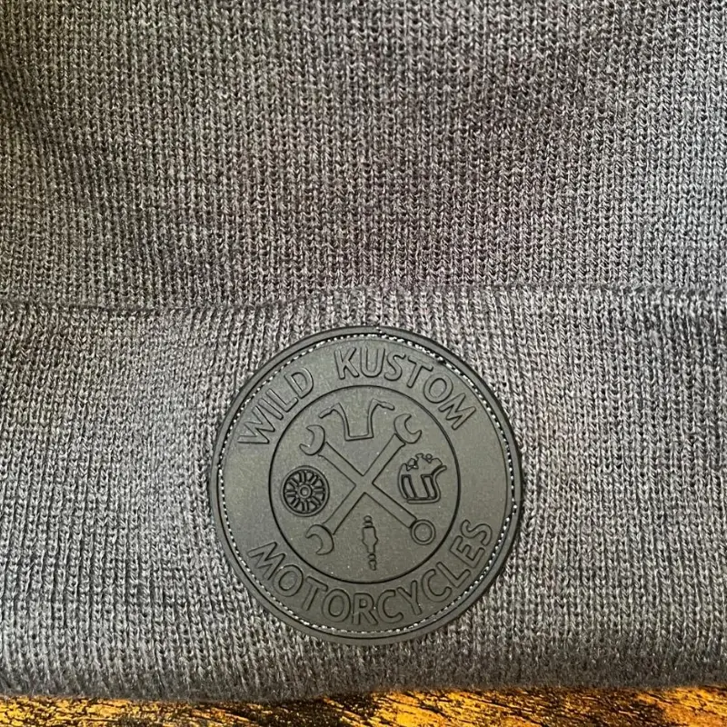 Le connet avec le logo Wild Kustom Motorcycles en caoutchouc est disponible en 5 couleurs différentes, parfait pour tenir chaud en hiver.