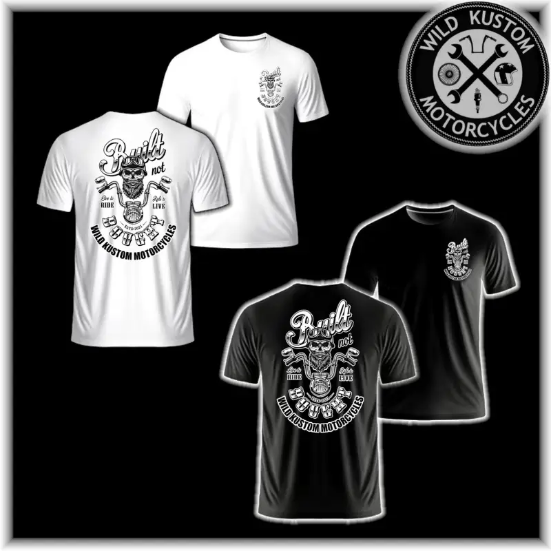 Complétez votre collection avec le t-shirt « Buil Bought ». Disponible en Noir ou Blanc, ce t-shirt accompagne parfaitement votre look de motard.